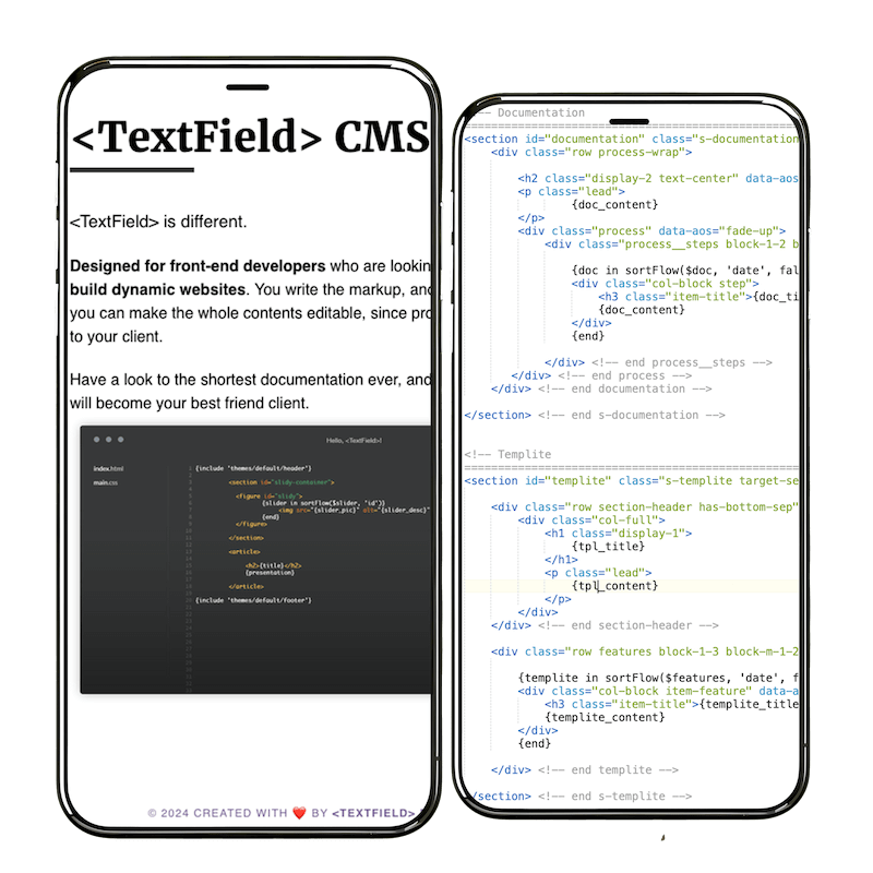 Designed for front-end developers who are looking for the simplest tool to build dynamic websites. You write the markup, and thanks to a few variables you can make the whole contents editable, since